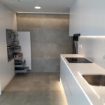 Proyecto y Reforma integral. Se realizaron refuerzos estructurales para conseguir mayor amplitud y luminosidad consiguiendo una estancia diáfana integrando salón y cocina. Reforma de estilo minimalista de acabados de gran calidad.